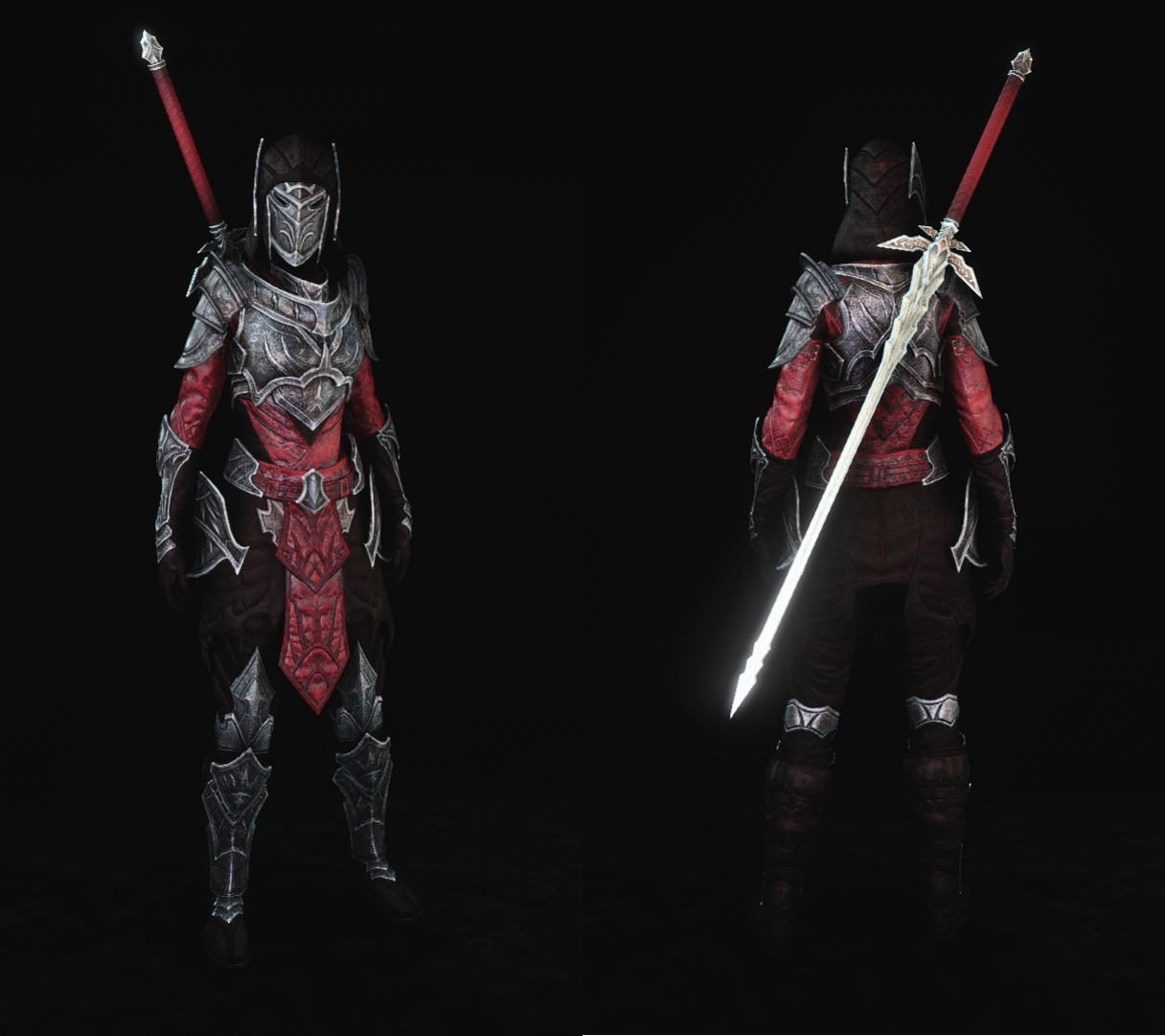 Alexia has a suit of plated mage armor she commissioned some time after she was infected with vampirism, before the Planemeld. She has kept this suit of armor in pristine condition, not letting the years take their toll, or dirt and grime dull its polish. It's a medium weight armor that offers good protection but not at the cost of weighing her down. It was tailored to her body and constructed in such as way as to feel as if it's not even there, not hindering her movement or stamina.Her primary mode of combat is a silver greatsword, supplemented by blood magic which she can use to augment her sword or drain the blood and essence from her enemies. Alexia knows how to raise the dead, but typically avoids doing so as not to desecrate corpses. If the situation calls for an undead assistant, she prefers to assemble skeletons rather than stinking up the room with a rotting corpse.